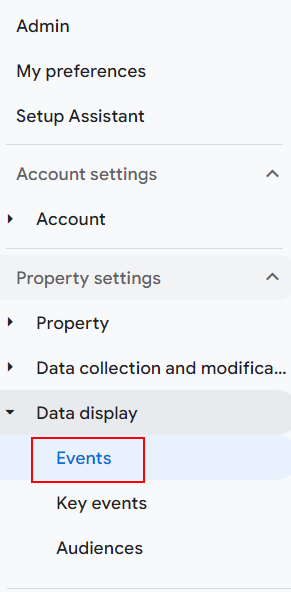 The “Create Event” feature lets you fire new events based on the events have just fired. To find it, click on “Events” in the left-hand menu: